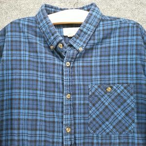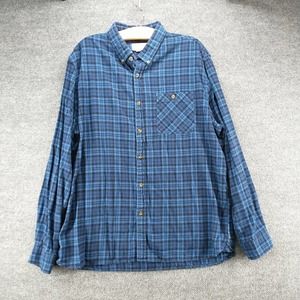 Boston Traders Men's Flannel Button-Down Shirt Blue Black XXL Plaid 100% Cotton