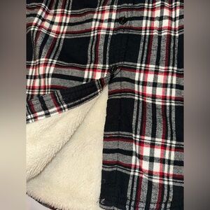 Boston Traders Men’s Sherpa Lined Shacket Jacket Black White Red Plaid Size M