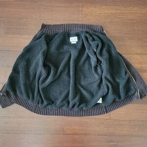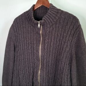 Boston Traders Men's XXL Cable Knit Fleece Lined Zip-Up Sweater Jacket Brown