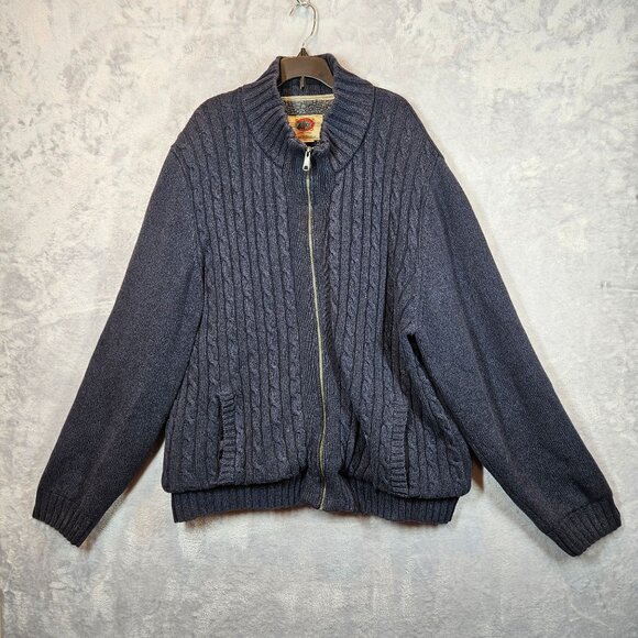 Boston Traders Mens XXL Cable Knit Full Zip Cardigan Faux Sherpa Lining gorpcore