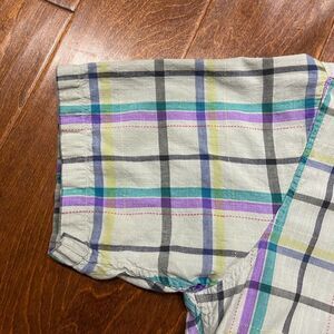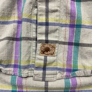 The Boston Traders Vintage Button Front Plaid Multicolored Shirt is a must-have for any stylish man. This pre-owned shirt is in great condition and features a short-sleeved design. An extra button is included for added convenience. Add this high-quality shirt to your wardrobe today.