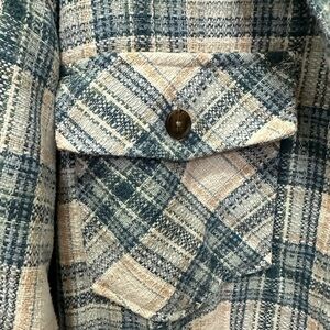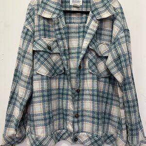 In great condition buttoned down shacket plaid shirt with front pockets. Preppy and casual.