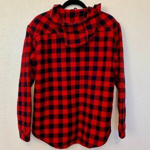 Warm flannel shirt jacket by Boston Traders. Features: fleece lining, hooded, pockets, long sleeves. Great for cooler weather and camping.