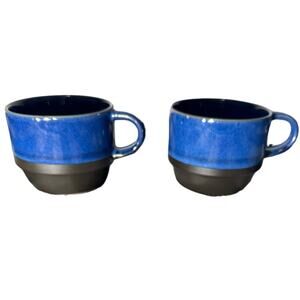 Boston Warehouse Set of 2 Stoneware Dark Blue Stackable Mugs