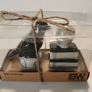 Boston Warehouse ceramic salt and paper shakers, NWT skull and crow. Still sealed in package, have not removed. Crow is aprx. 3.5" tall.