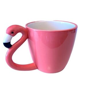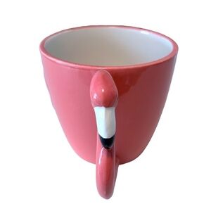No longer in production is this pink flamingo handled mug. The cute graphic reads "Let's Flamingle".