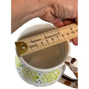 Adorable giraffe-themed ceramic mug perfect for your morning coffee or tea. Hand-painted design by Boston Warehouse. Dishwasher and microwave safe.