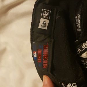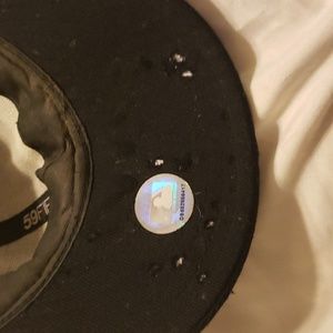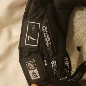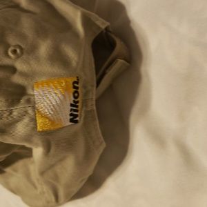 2 pre-owned hats black is Boston baseball still has the sticker but has some holes in the hat largest one shown size 7 or 55.8 cm the other hat has Nikon on the back and has some sweat stains on the bill it us adjustable