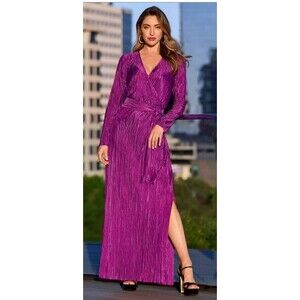 Boston proper Surplice Plisse Wrap Maxi Dress Hollyhock size M/ NEW PURPLE