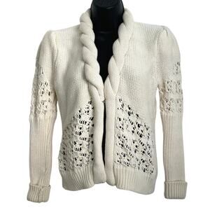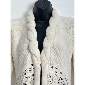 Boston proper twisted collar 100% cotton open front cable knit cardigan size Small