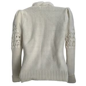 Twisted collar, thick heavy weight sweater. puff shoulders. Hook eye closure on front