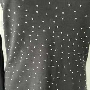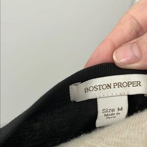 Elevate your wardrobe with this Boston Proper blouse, showcasing a sophisticated black and white design. The 3/4 sleeves and embellished details add a touch of elegance, making it a versatile choice for any occasion. Crafted with attention to detail, this top combines style and comfort effortlessly.