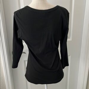 Boston Proper Pima Cotton Black 3/4 Sleeve Lo Embellished Blouse