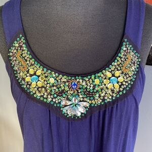 Boston Proper navy jersey stretch beaded neckline tank. Soft and stretchy viscose/spandex blend. Pullover. Size XS. Excellent condition. Nonsmoking home.