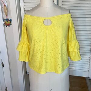Boston Proper Shoulder Blouse 👚 Yellow with bell 3/4 sleeves measurements on pictures, size XXS,