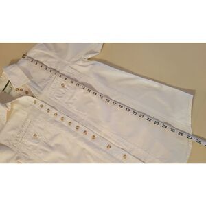 This shirt is AMAZING! Loaded with detailing and fun buttons. Shirt is in exceptional condition other than two minor flaws noted in photos. You will LOVE this top.