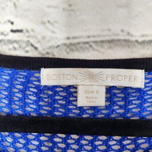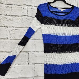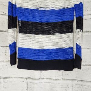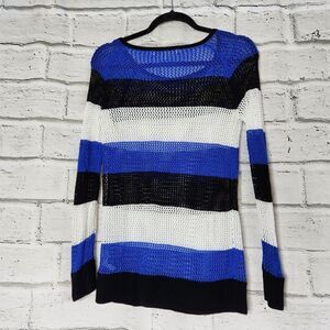 Boston Proper Women Striped Black Blue White Open Knit Pullover Sweater Small.