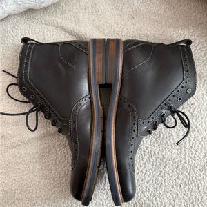 These ankle-high boots from Bostonian feature a classic wingtip design with decorative perforations. Made from high-quality leather, they offer a stylish and textured appearance, perfect for elevating any outfit.