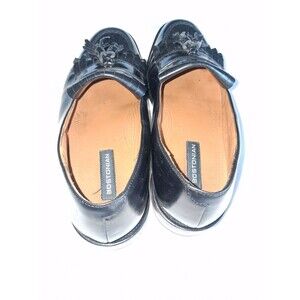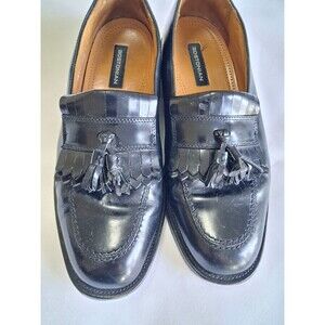 The Bostonian Men's Black Leather Tassel Loafers in size 8.5 M are a stylish and versatile choice for any occasion. These slip-on loafers feature an almond toe shape, tasseled accents, and a non-slip outsole for comfort and stability. Made from high-quality leather with a leather lining and insole, these shoes are perfect for weddings, clubwear, or outdoor events. The classic black color and solid pattern make them a timeless addition to any man's shoe collection.