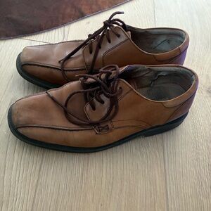 Elegant brown leather derbys by Bostonian. Features lace-up design. Perfect for versatile style options. In good used condition with label on sole wearing down- still plenty of miles left for walking. 👞