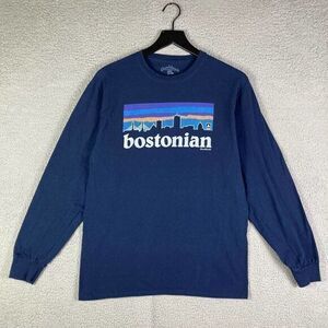 Bostonian T-Shirt Long Sleeve Mens Size Medium Graphic Tee Crew Neck Boston Blue
