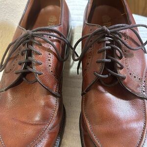 Preowned. All leather. Only very minimal scuffs throughout. Noticed that discoloration on the leather on the right shoe as pictured this could probably be polished out. Leather laces. Normal wear on bottoms as pictured. Very minimal wear on toes as pictured and heels. Please examine photos carefully. Feel free to message me with any questions or offers.