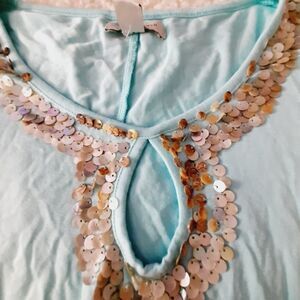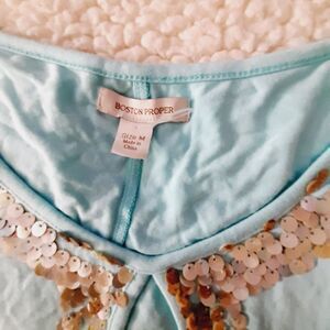 Boston proper blue shell decor soft knit medium keyhole blouse