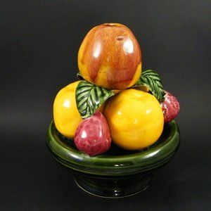 Botanic Ceramic Bowl of Fruit Centerpiece By Jay Willfred Apple, & Strawberries