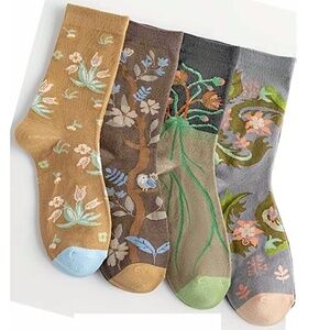 Botanical Patterns, Cotton Socks 4 Pair Med