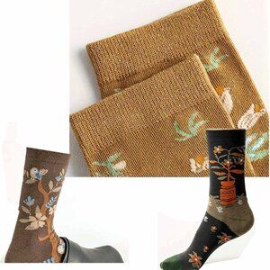 Botanical Patterns, Cotton Socks 5 Pair Med