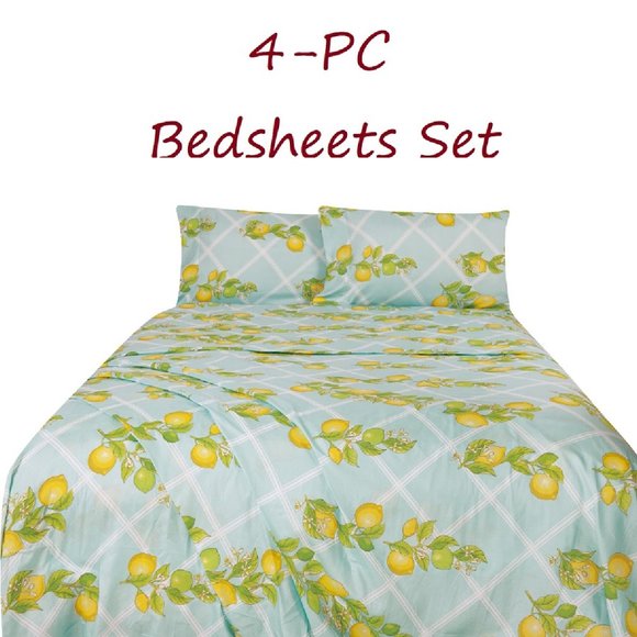 Botanical Print Bed Sheets Set 4-pc Bedsheets Set Full Queen King size
