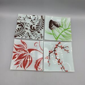 Botanical Prints Appetizer Plates Lot of 4 5"x5" Square Glass