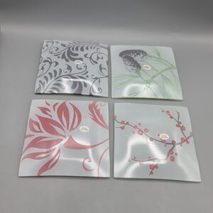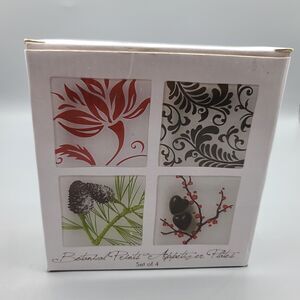 Botanical Prints Appetizer Plates Lot of 4 5"x5" Square Glass. In original box. Box has some wear.