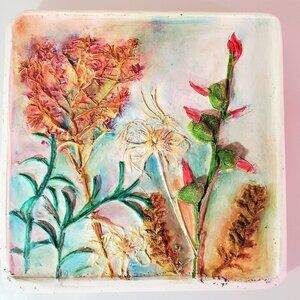 Botanical Relief Casting in Plaster Art Plaque / Tile Original, One-of-a-Kind
