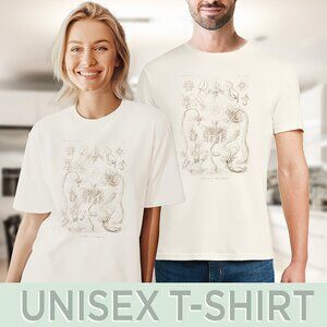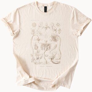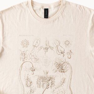 Botanical ocean creatures coral and jellyfish illustration brings marine science to life on a natural beige shirt Item Is New With Tag