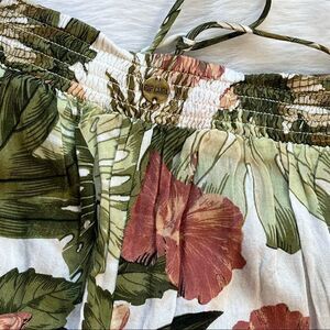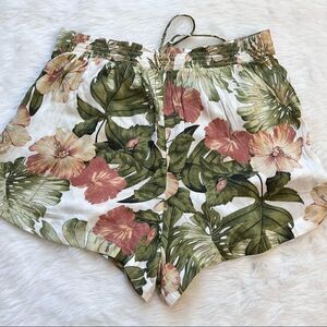 Botanical Island Print Shorts Rip Curl Hibiscus Casual Pull on Tassel Tie Large