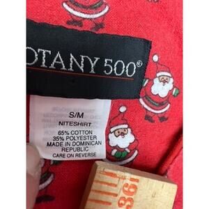 Get ready for the holidays with this charming vintage Botany 500 Christmas night shirt! This red flannel night shirt features a festive design with Santa and wreaths. Perfect for a cozy Christmas morning or a fun holiday-themed pajama party.