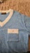 A very generous Large or an Xtra large baby blue and Cream Colored sweater.