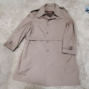 the coat material says "made in USA of imported fabric". The material inside is wool and dry clean only