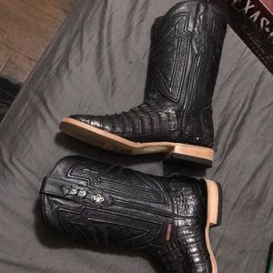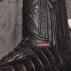 I’m selling these black Texas country alligator skin boots I bought a month ago, I have only worn them once to walk around my garage so they’re pretty new.