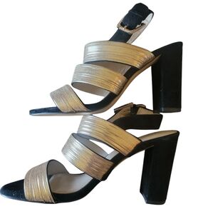 Botiker black suede and metalic gold strappy pumps. EUC, like new