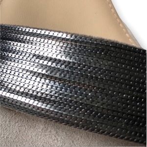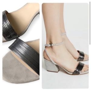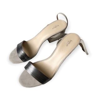 Botkier block heel genuine suede and metal open toe sandals. Slingback with ankle strap. Metal front strap. 2.5" heel. preloved condition with some wear to the bottoms and straps, but still in great shape.