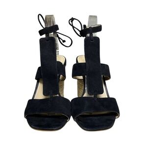 Botkier Alexia Size 8.5 Black Suede Leather Block Heel T-Strap Sandals Shoes