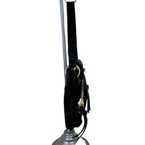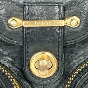 Botkier vintage Bianca Bella shoulder bag in black with gold hardware. They don't make bags like this anymore! This Y2K era baguette bag features the softest, most luxe lamb leather exterior and a fully suede lined interior. Heavy dute gold hardware and so many cute details, like leather zipper pulls with studs, a front turnlock closure, and cute bullring style shoulder hardware attachments. 2 front zip pockets, flap top opens to reveal a back compartment with interior zipper pocket, a leather slip pocket, and a third compartment with zipper closure. This small purse expands to fit everything you need while staying organized! Perfect to wear for any occasion for a designer look. Approximate measurements: 11"L x 7"H x 2" expandable D, 7" shoulder strap drop. Excellent used condition, final photo shows faint marks to tiny area of interior suede between inside leather zipper and flap.