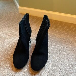 Sleek black ankle boots. Side zipper closure. Perfect for any occasion.