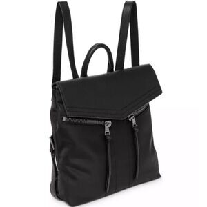 Sleek black backpack with dual front zippers. Stylish and functional design. Perfect for everyday use.