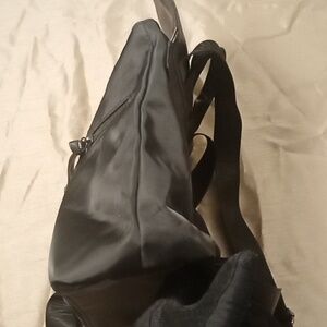 The Botkier Black Backpack features a sleek, structured design with a sophisticated, minimalist aesthetic. Crafted from quality materials, it boasts a subtle sheen and textured detailing, making it a stylish choice for any occasion.