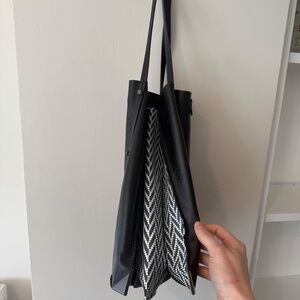 Botkier Black Leather Expandable Tote Patterned Fabric Accordion Sides