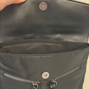 The Botkier Black Backpack showcases a sleek and minimalist design, crafted from a nylon material with leather-like trim. Its structured shape and medium size make it an ideal choice for everyday use, offering both style and functionality. With its consistent black color and clean lines, this backpack is perfect for those seeking a professional and versatile accessory.