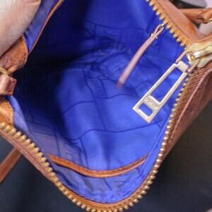 Botkier brown leather crossbody purse with gold tone metal zip and stud details